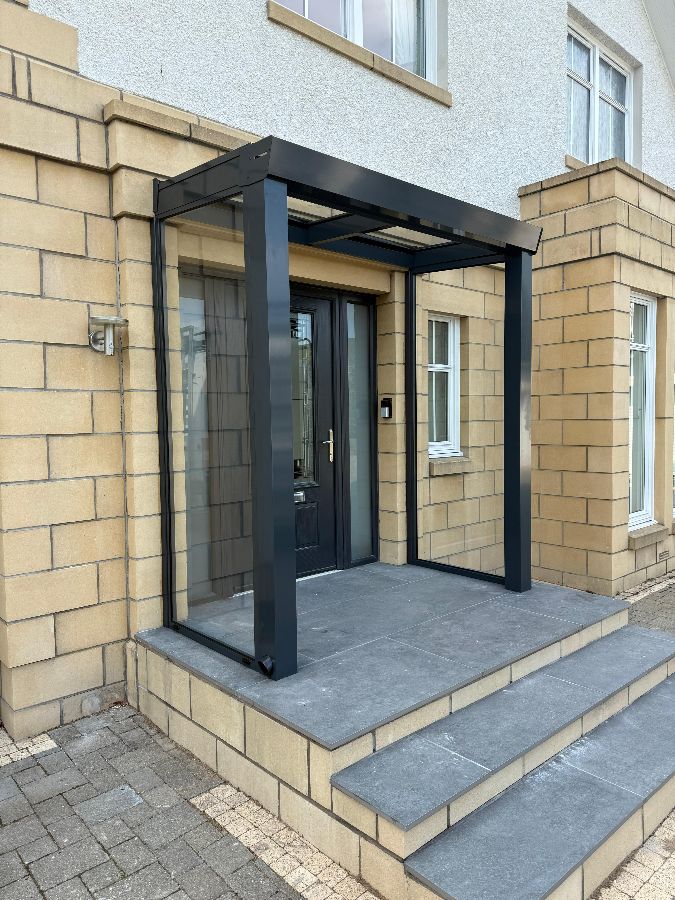 A modern glazed aluminium front porch can completely transform an entrance, adding: