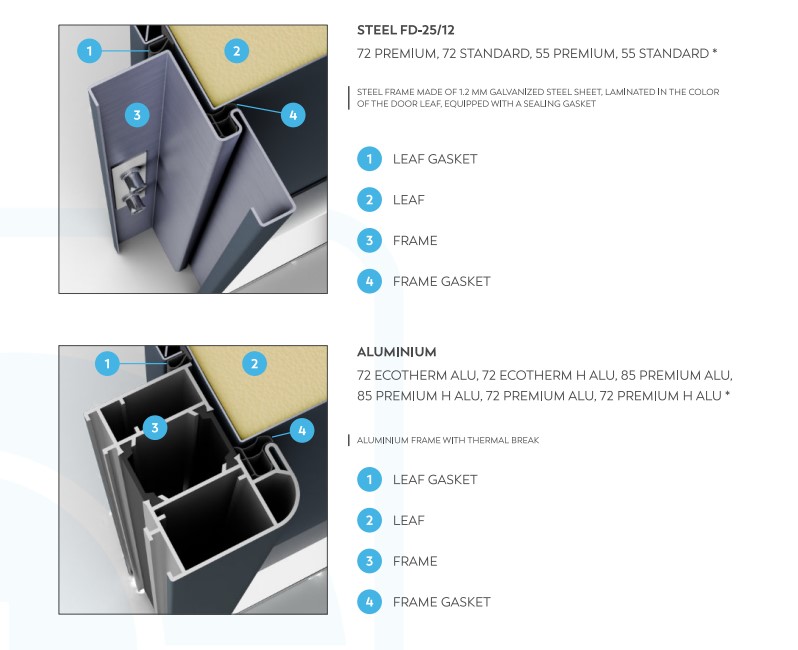 - Most popular 55mm and 72mm door leafs, with 85mm, and even 101mm options available