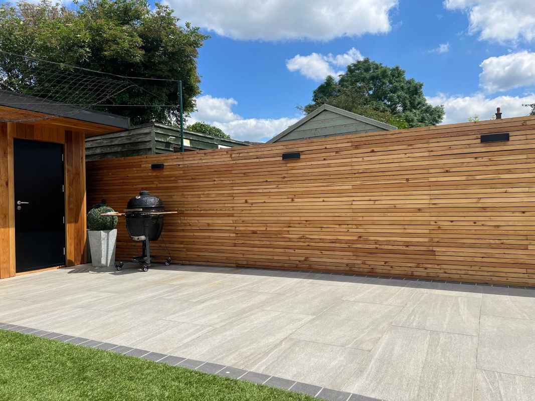 The popularity of slatted fencing has surged due to its striking visual appeal and the way it harmonizes with the natural landscape. The interplay of light and shadow created by the horizontal lines of MGE UK’s larch battens draws the eye and enhances the beauty of your garden.