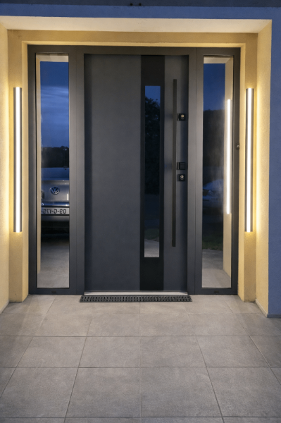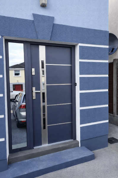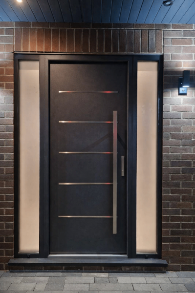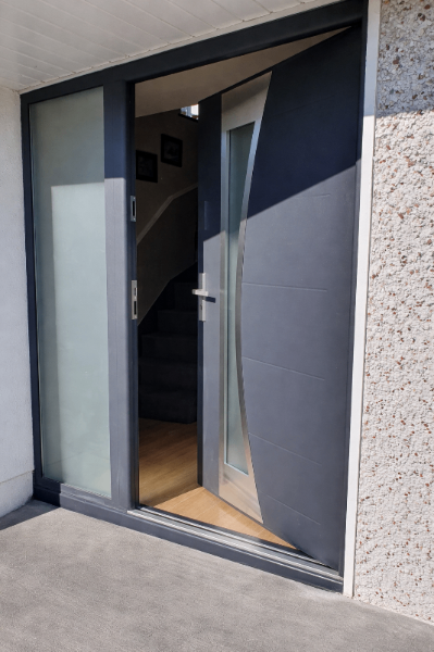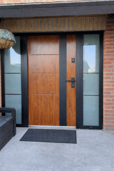 Whether you want a sleek minimalist look, a bold architectural statement, or a large entrance with side panels — every door is made to measure around your home.