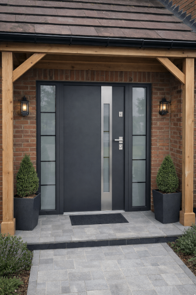 For larger glazed entrances, aluminium frames deliver the best long-term result.
