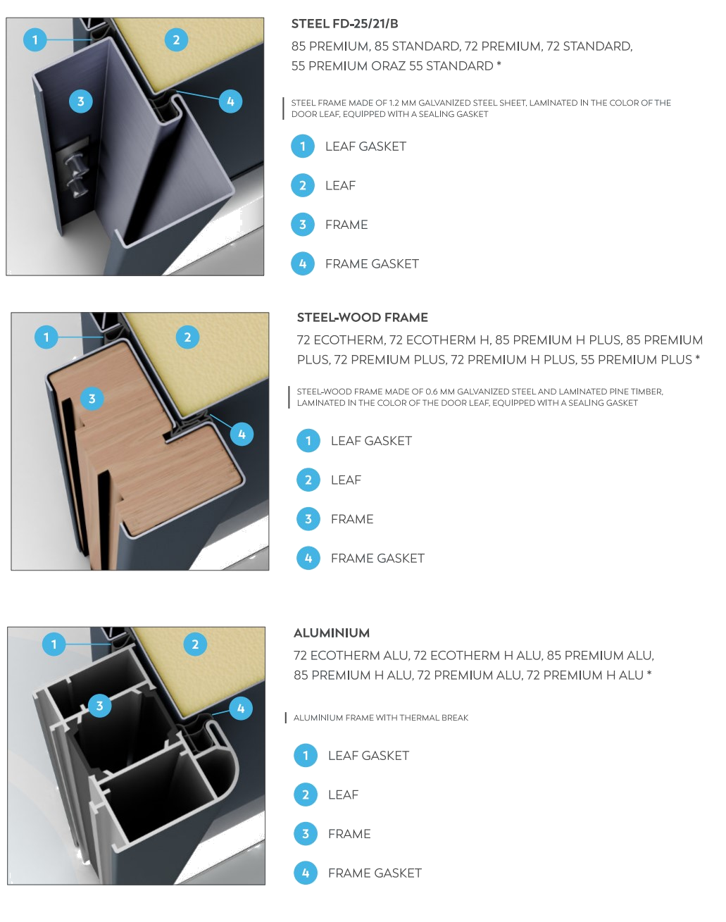 Thick door leaf options: 55mm, 72mm or 85mm